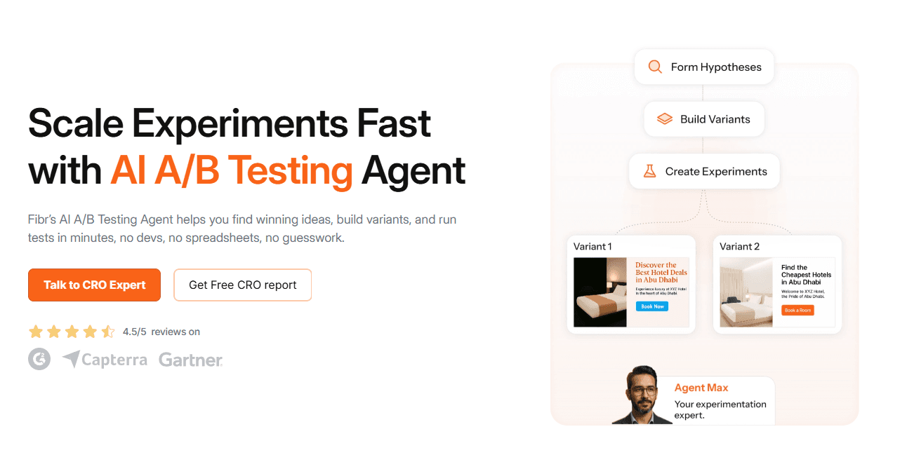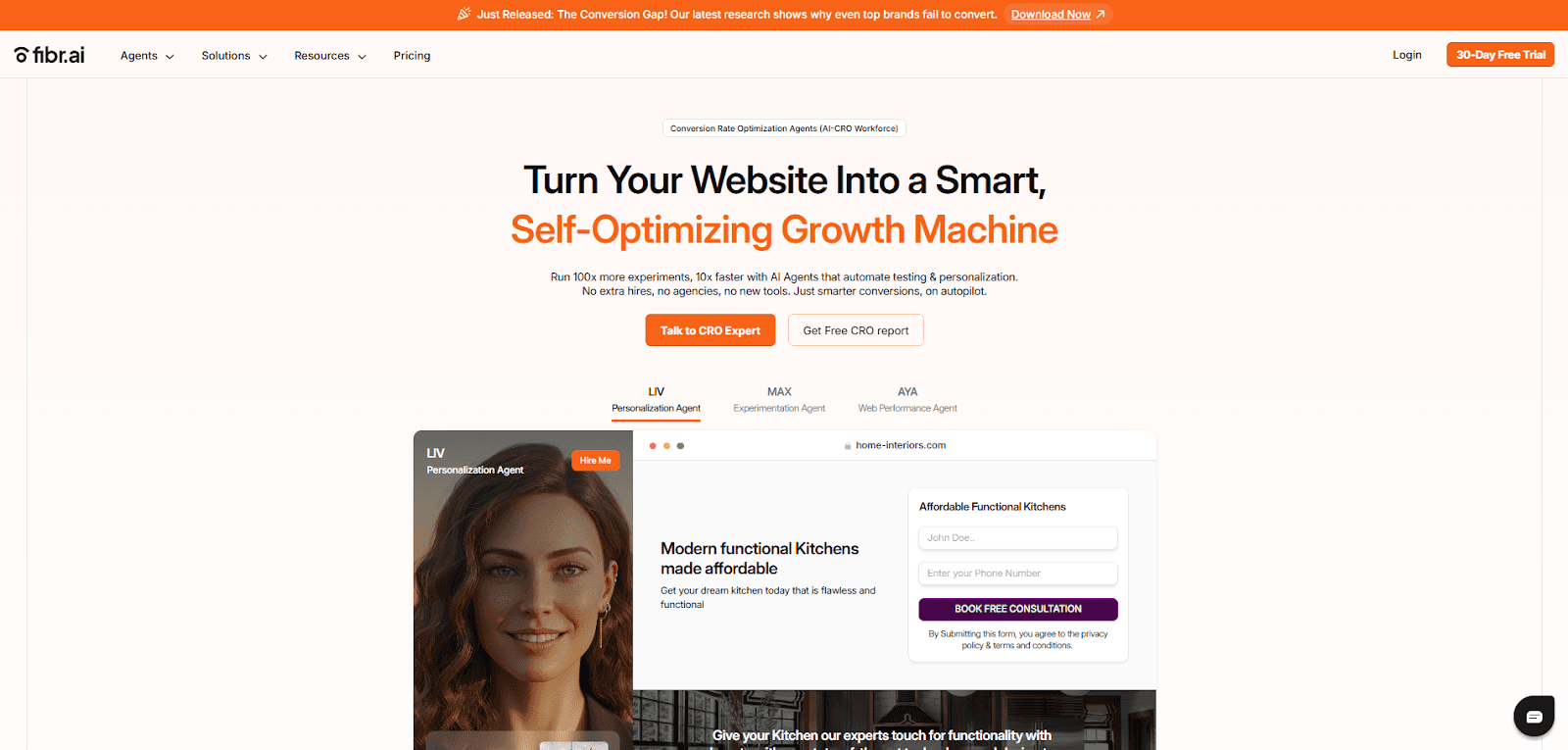 Fibr AI is a conversion rate optimization tool that automatically tests and personalizes your landing page variations. You get two AI agents to optimize your brand messaging and maximize conversions.
