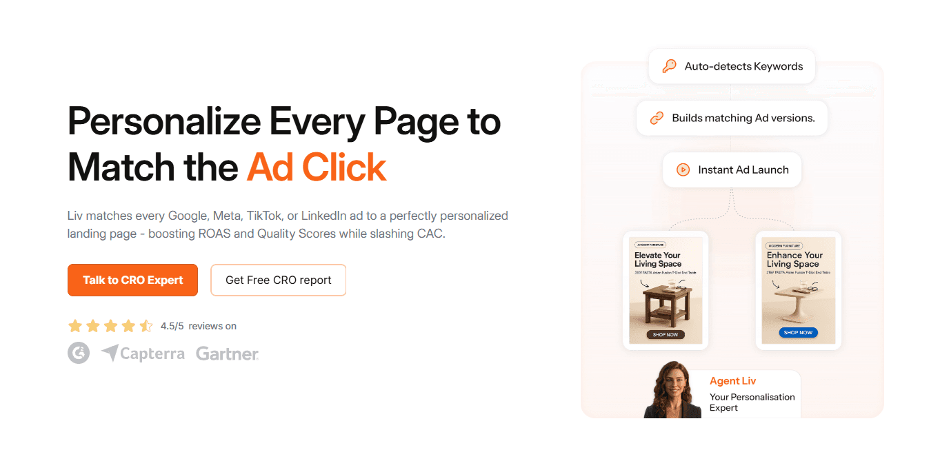 Provides a free CRO audit to show where your landing pages are losing conversions