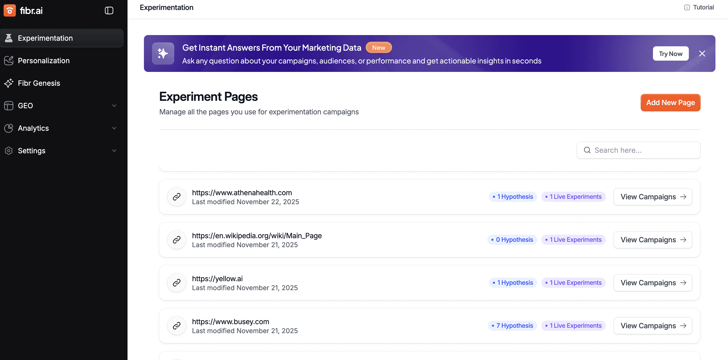Fibr.ai is an AI-native, agentic experience layer designed to transform static websites into intelligent, self-optimizing systems that adapt, experiment, and evolve with every visitor, whether human or machine. By merging personalization, experimentation, and automation into a unified loop, Fibr.ai ensures that each web page learns from interaction data and continuously improves its messaging. It enables enterprises to scale digital experiences that think, respond, and grow autonomously, turning every URL into a living agent that crafts a tailored, dynamic experience for users. Fibr.ai seamlessly integrates with existing marketing stacks and enables effortless experimentation across thousands of URLs, bridging the gap between insights and actions.