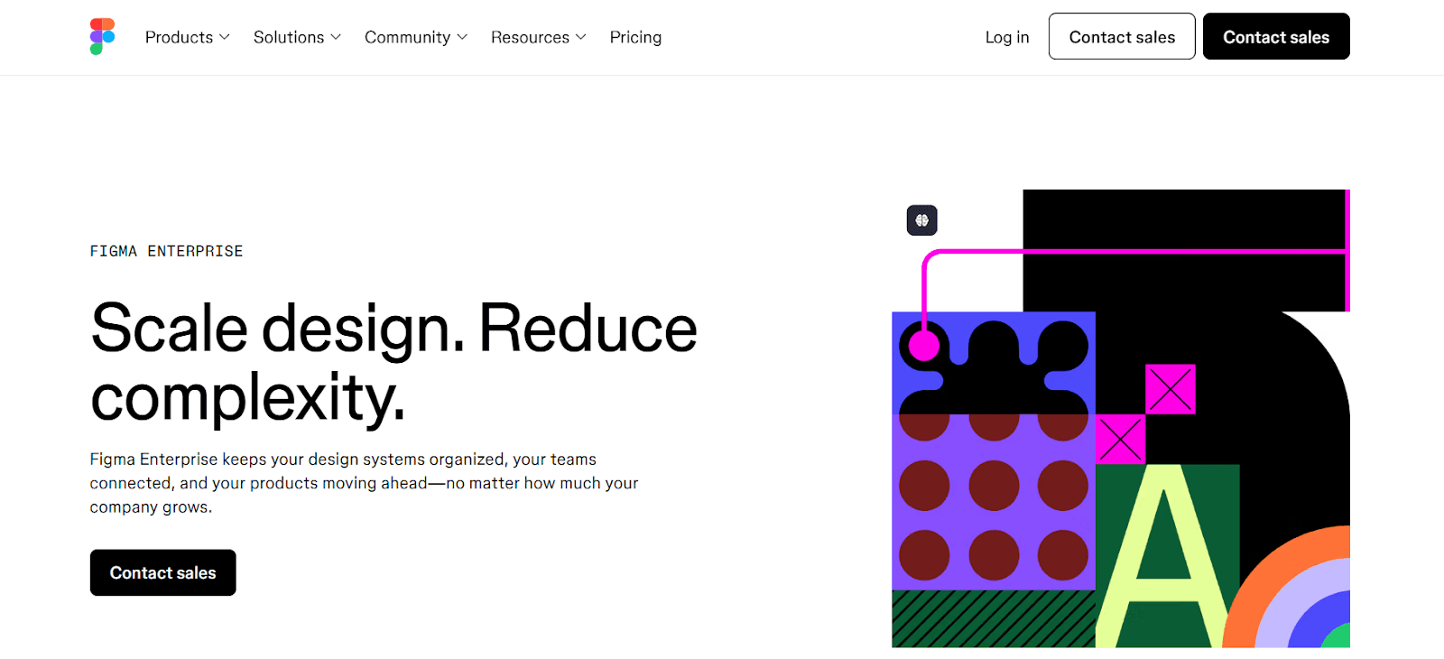 Figma’s enterprise landing page feels fast, collaborative, and made for design teams, and that’s the whole point. The headline is extremely directly targeting ICP pain points and smartly presents the solution as well (Scale design, reduce complexity).
