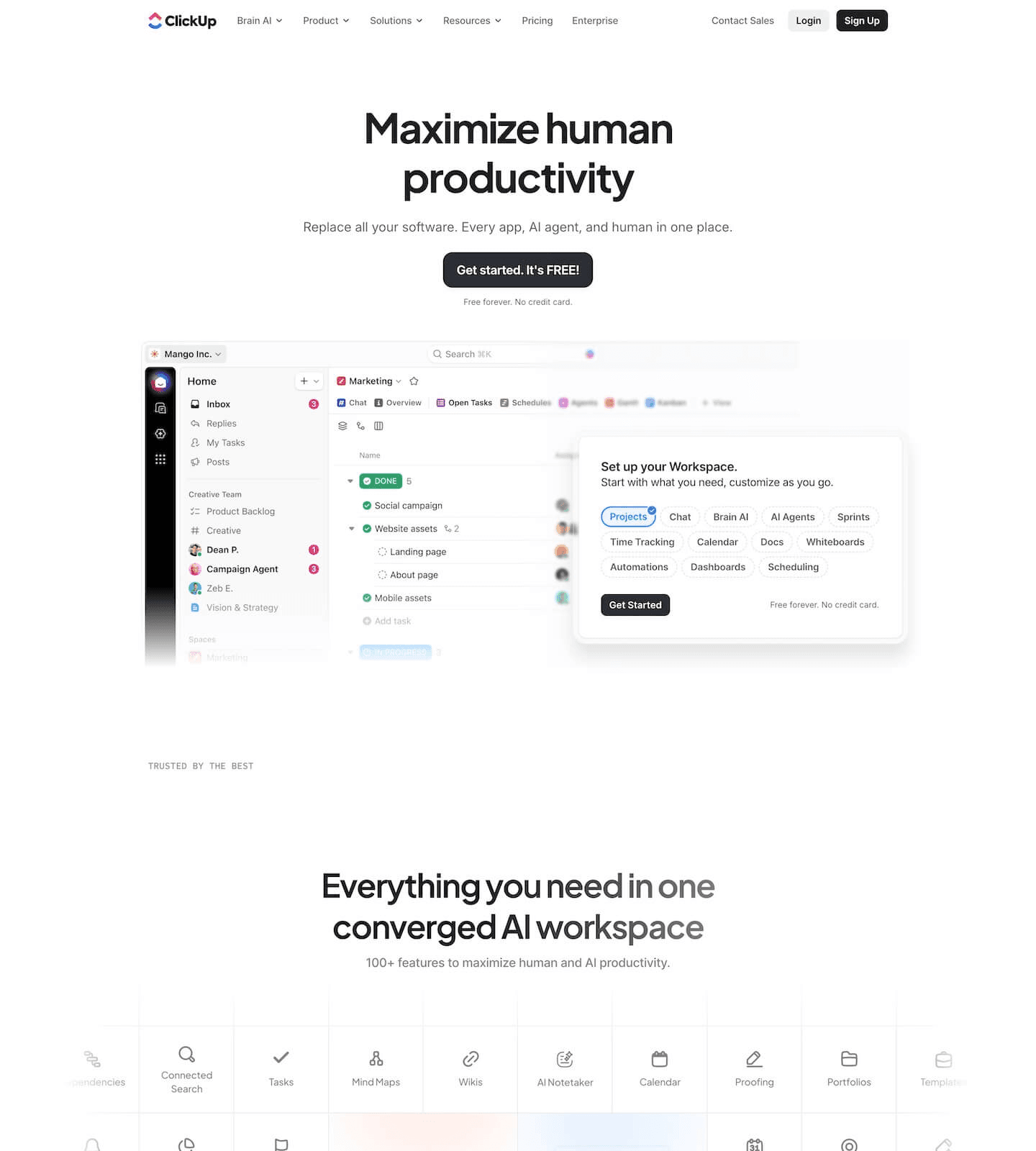 Let’s look at a masterclass in clarity. ClickUp, a productivity platform, uses its primary landing page not just as a homepage, but as a high-converting gateway. Scanning their page reveals several winning tactics: