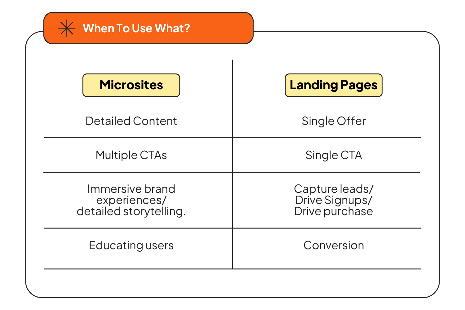 Go for a microsite if your campaign requires storytelling, visuals, and interactive elements.